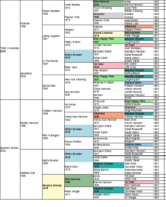 Shadow Play’s maternal line includes Warm Breeze (Bret Hanover-Touch Of Spring) which brings in Good Time-Breath O Spring and the classic Old Maid/Spinster/Scotland connections. So does No Nukes’s maternal lines through Tar Heel and Gogo Playtime. Shadow Play will enjoy getting those influences returned from the mares he gets – .