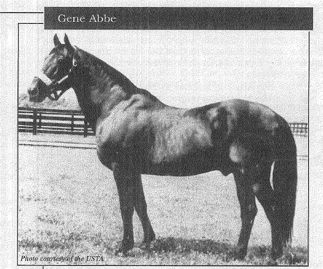 Gene Abbe has one of the longest stud careers on record, standing commerically from 1951 to 1977, with a total of 1073 foals for 871 starters (81% starter ratio). His biggest crops were in the early 1960s, when he was second only to Adios on the money-winning pacing sire listing (although with greater numbers on the track than Adios).