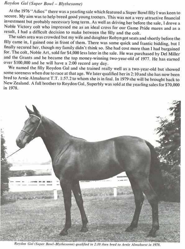 I’m going to conclude with an extract of interest from The Roydon Heritage by Sir Roy McKenzie (of Roydon Lodge), published in 1978 when Roydon Gal was in foal to Arndon: