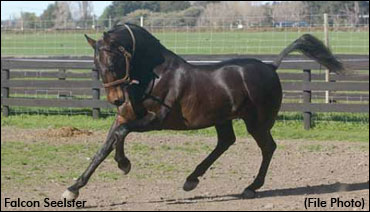 Watching the Big Jim filly bowl around this morning, you could see she has grown even bigger, but Marshall points out the the growing has been really even. She would be closing in on 16hh as a late 2yo, and the length of her stride is impressive. With a bit more strength and experience, she’s definitely going to develop into a lovely 3yo and later a big, bold mare. She takes after her sire Big Jim in her dark good looks and, like him, although she is tall and long-legged there is nothing heavy boned about her.